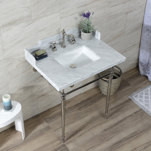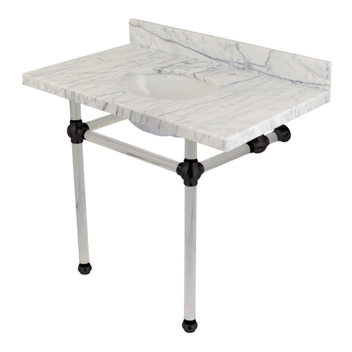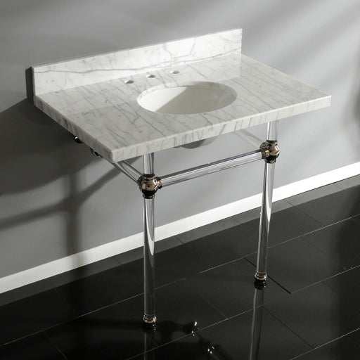 Kingston BrassTempleton KVPB3630MA6 36-Inch Carrara Marble Vanity Top with Acrylic Legs (8-Inch, 3-Hole), Carrara Marble White/Polished Nickel With a beautifu...