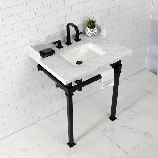 Kingston BrassViceroy LMS30MSQ0 30-Inch Carrara Marble Console Sink with Stainless Steel Legs (8-Inch, 3-Hole), Carrara Marble White/Matte Black With a beauti...