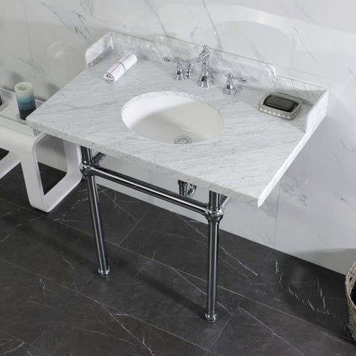 Kingston BrassDreyden LMS36M81ST 36-Inch Carrara Marble Console Sink with Stainless Steel Legs (8-Inch, 3-Hole), Carrara Marble White/Polished Chrome With a b...