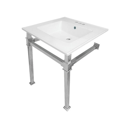 Kingston BrassMonarch KVPB25224Q1 25-Inch Ceramic Console Sink with Stainless Steel Legs (4-Inch, 3-Hole), White/Polished Chrome With a beautiful ceramic coun...