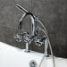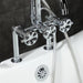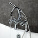 A touch of vintage charm alongside sleek, modern design come together within this deck-mount clawfoot tub faucet. As the perfect complement to your tub, this will complete your refined bathroom decorum with the help of its premium, glistening polished chrome finish and telephone style hand shower. The solid brass construction also makes for a heavy, quality made product.