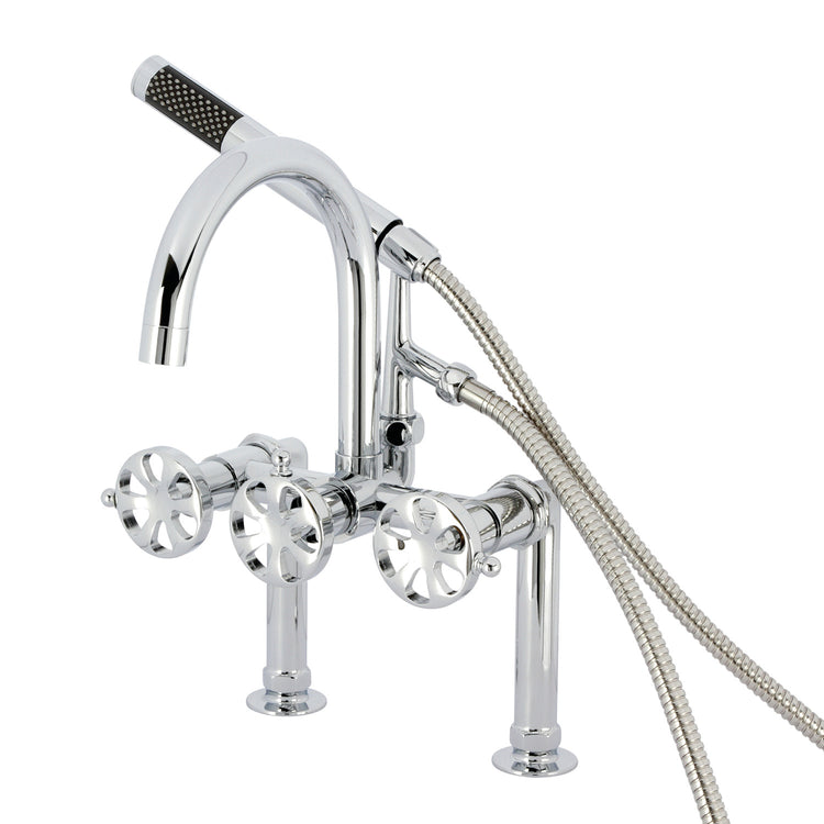 Kingston Sona AE8101RX - Belknap Three-Handle 2-Hole Deck-Mount Clawfoot Tub Faucet with Hand Shower, Polished Chrome