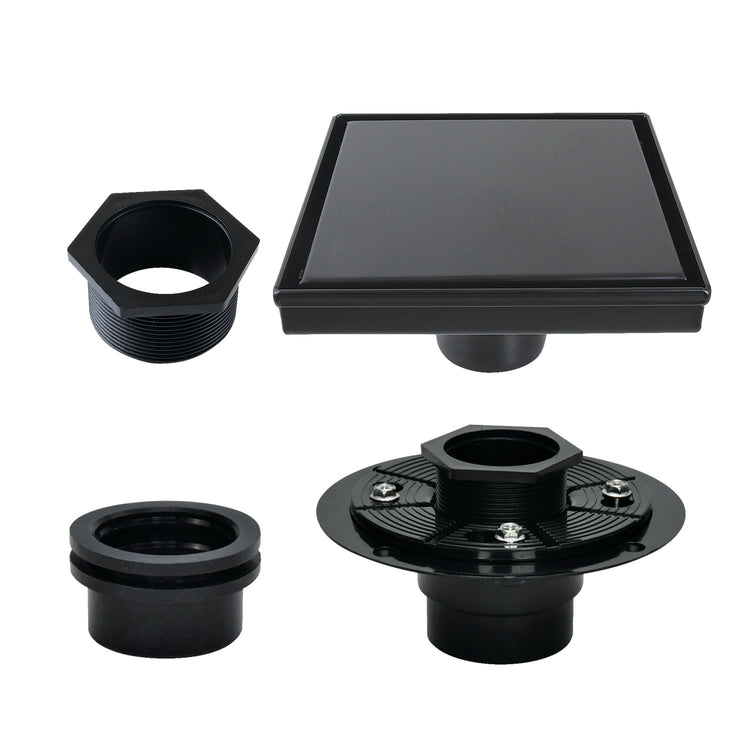 Kingston Watercourse BSFK6620 6-Inch Stainless Steel Square Shower Drain with Flange, Matte Black