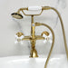 Kingston Heirloom CC549T7 - Vintage Three-Handle 2-Hole Tub Wall Mount Clawfoot Tub Faucet with Hand Shower, Brushed Brass