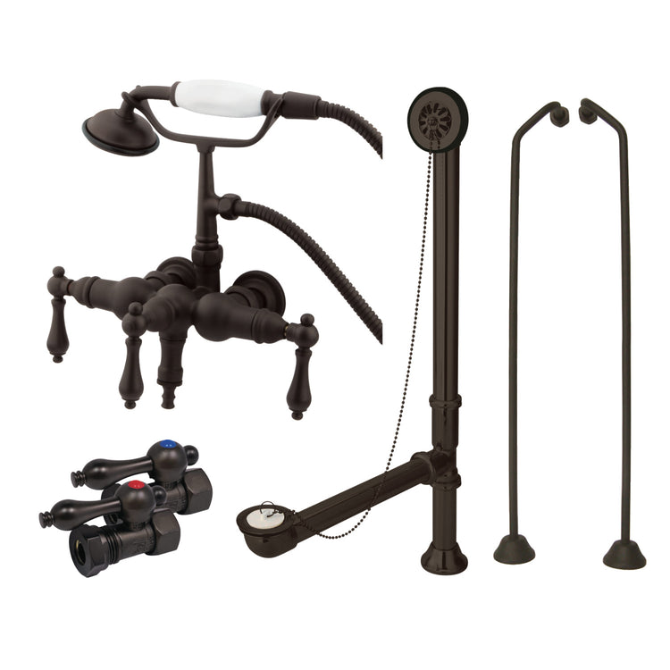 Kingston Vintage CCK19T5B Three-Handle 2-Hole Tub Wall Mount Clawfoot Tub Faucet Package with Supply Line, Hand Shower and Tub Drain, Oil Rubbed Bronze