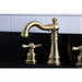 Kingston Heirloom FSC1973AX - American Classic Two-Handle 3-Hole Deck Mount Widespread Bathroom Faucet with Brass Pop-Up, Brushed Brass