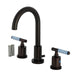 Elevate the look of your bathroom with this stylish, widespread faucet that boasts modern features, adding a bold and edgy design element. The tubular gooseneck spout and sleek cylindrical handles exude a clean and contemporary aesthetic. To complement your bathroom decor, this faucet comes with two sets of neoprene handle inserts in black and blue, as well as a color-matching pop-up drain. Crafted from solid brass and equipped with a ceramic cartridge, this faucet ensures trouble-free performance for years. With six premium finishes available, you can effortlessly match it to your bathroom's color scheme. Complete your bathroom project with the wide range of bathroom accessories offered by Kingston Brass.
