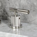 This widespread faucet from the Convergent Collection by Kingston Brass, with its Modern tubular spout and cylindrical knurled accented handles, will create a bold and edgy aesthetic in your bathroom. Manufactured out of lead-free solid brass and equipped with a ceramic cartridge to give you many years of trouble-free performance. This faucet includes a color-matching pop-up drain, and it is available in many premium finishes to give your bathroom that elegant, contemporary finished look.