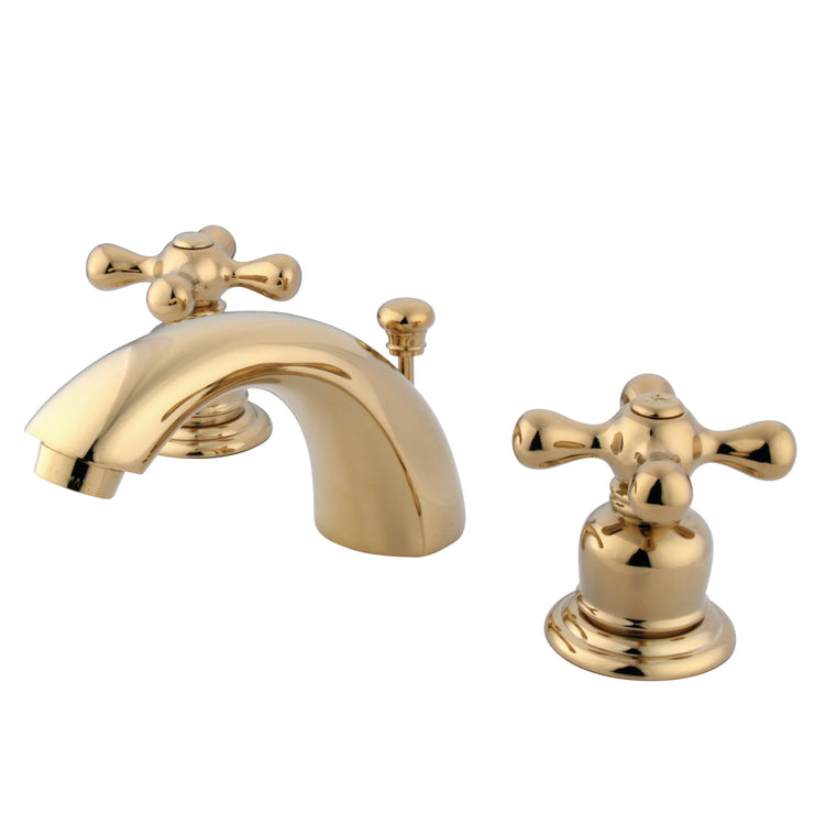 Kingston Heirloom GKB942AX - Magellan Two-Handle 3-Hole Deck Mount Mini-Widespread Bathroom Faucet with Pop-Up Drain, Polished Brass