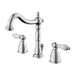 A lavish spark of traditionally stylized glamour is brought to your bathroom ensemble with this beautiful faucet. Ideal for more spacious bathrooms, widespread faucets are more spread apart and feature a 3-hole installation. The Heritage 8" Widespread Bathroom Faucet, with its featured sturdy brass construction and premium polished chrome finish, are guaranteed to glamorize your home's traditional ensemble for years to come. Celebrate sophistication and traditional decor with this statement piece. A matching finish drain is also included.