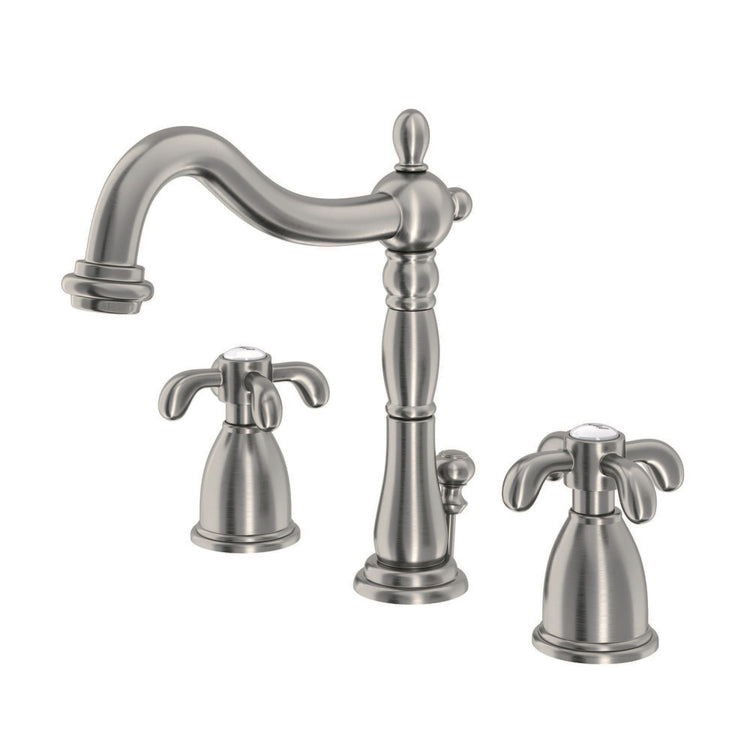 Kingston Heirloom KB1978TX - French Country Two-Handle 3-Hole Deck Mount Widespread Bathroom Faucet with Pop-Up Drain, Brushed Nickel