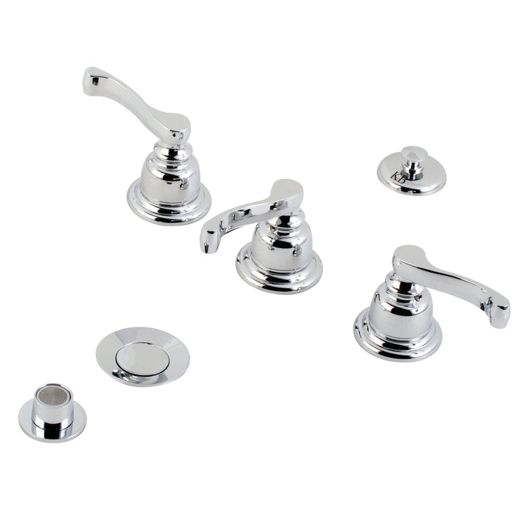 Kingston Tulare KB321FL - Royale Three-Handle Deck Mount Vertical Spray Bidet Faucet with Brass Pop-Up, Polished Chrome