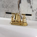 This faucet tastefully interweaves top-notch ergonomic design and the sheen of contemporary simplicity with its black silicone rubber coated handles and cylindrical facets. The Kaiser 4-inch centerset bathroom faucet with pop-up drain and its featured sturdy brass construction and premium polished brass finish are guaranteed to glamorize your home's modern ensemble for years to come. Centerset bathroom faucets are ideal for smaller bathrooms and feature an easy 3-hole installation. Furnish your home surrounding with the modern flair of this fixture. A matching finish drain is also included.