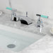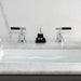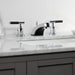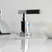 This faucet tastefully interweaves top-notch ergonomic design and the sheen of contemporary simplicity with its black silicone rubber coated handles and cylindrical facets. The Kaiser widespread bathroom faucet with pop-up drain and its featured sturdy brass construction and premium polished chrome finish are guaranteed to glamorize your home's modern ensemble for years to come. Ideal for more spacious bathrooms, widespread faucets feature a 3-hole installation at 8" center to center. Furnish your home surrounding with the modern flair of this fixture. A matching finish drain is also included.