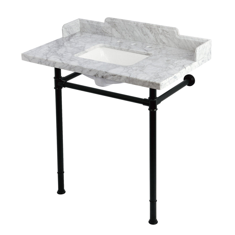 Kingston Heirloom KMS36227M8SQ0 - Wesselman 36-Inch Carrara Marble Console Sink with Stainless Steel Legs (8-Inch, 3-Hole), Carrara Marble White/Matte Black