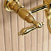 A lavish spark of traditionally stylized glamour is brought to your bathroom ensemble with this beautiful faucet. Attached to the wall behind your sink, the horizontal pop adds a stunning element to your bathroom design. Clean-up is also made a breeze as counter space is cleared up. The Heritage two handle two handle wall mount bathroom faucet and its featured sturdy brass construction and premium brushed brass finish are guaranteed to glamorize your home's traditional ensemble for years to come. Celebrate sophistication and traditional decor with this statement piece.
