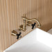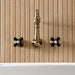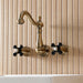Crafted in commendations to English nobility, the exemplary design of this faucet manifests regality and elegance with its black porcelain handles. Attached to the wall behind your sink, the horizontal pop adds a stunning element to your bathroom design. Clean-up is also made a breeze as counter space is cleared up. The Duchess two-handle wall mount bathroom faucet and its featured sturdy brass construction and premium antique brass finish are guaranteed to glamorize your home's traditional ensemble for years to come. Glamorize your home today with the traditional elegance of this faucet.