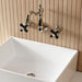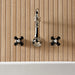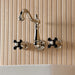 Crafted in commendations to English nobility, the exemplary design of this faucet manifests regality and elegance with its black porcelain handles. Attached to the wall behind your sink, the horizontal pop adds a stunning element to your bathroom design. Clean-up is also made a breeze as counter space is cleared up. The Duchess two-handle wall mount bathroom faucet and its featured sturdy brass construction and premium polished nickel finish are guaranteed to glamorize your home's traditional ensemble for years to come. Glamorize your home today with the traditional elegance of this faucet.