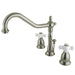 Kingston Heirloom KS1998PX - Heritage Two-Handle 3-Hole Deck Mount Widespread Bathroom Faucet with Brass Pop-Up, Brushed Nickel