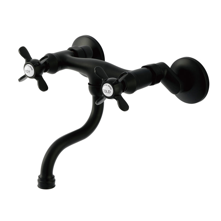 Kingston Heirloom KS2110BEX - Essex Double-Handle 2-Hole Wall Mount Bathroom Faucet, Matte Black