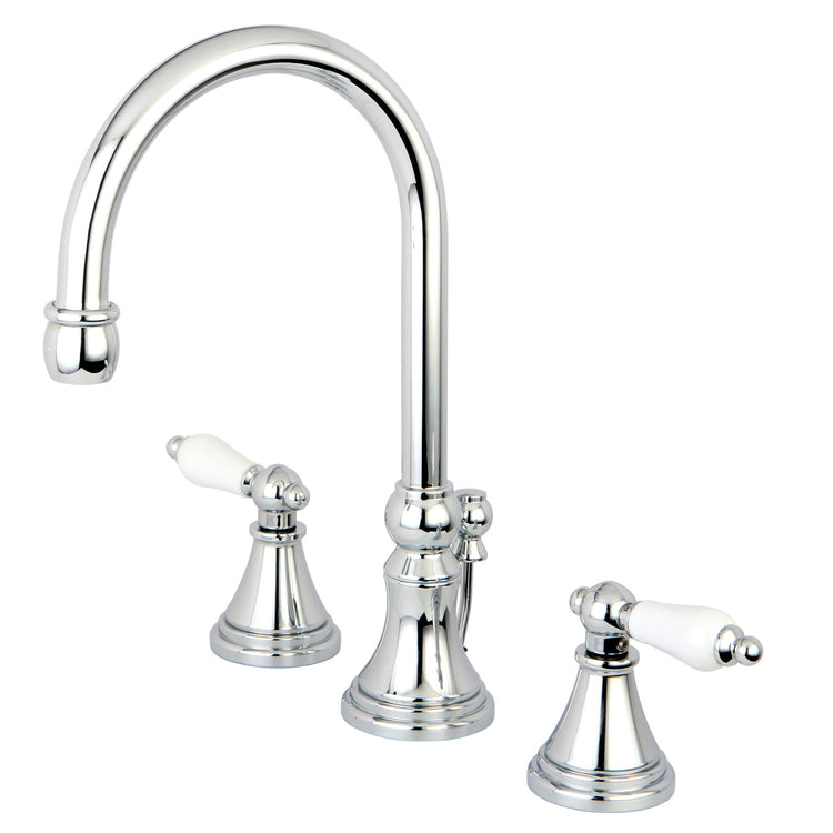 Stylized for excellence in design and performance, this faucet will take your bathroom space to the next level. Ideal for more spacious bathrooms, widespread faucets are more spread apart and feature a 3-hole installation. The Governor 8" Widespread Bathroom Faucet, with its featured sturdy brass construction and premium polished chrome finish, are guaranteed to glamorize your home's traditional ensemble for years to come. A matching finish drain is also included.