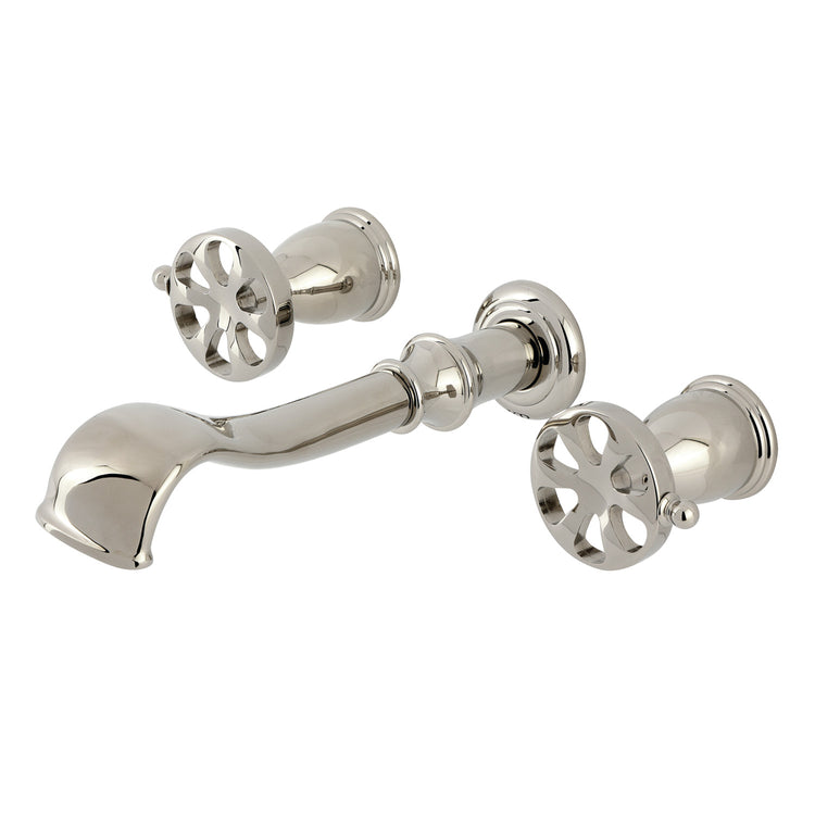 This Belknap collection wall mount roman tub faucet by Kingston Brass not only provides superior performance by quickly filling your bathtub, but also, because of its elegant waterfall spout and Industrial style wheel type handles, it will become the centerpiece of your bathroom. Crafted from solid brass and equipped with a ceramic cartridge, this faucet ensures trouble-free performance for years. With six premium finishes available, you can effortlessly match it to your bathroom's color scheme. Complete your bathroom project with the wide range of bathroom accessories offered by Kingston Brass.