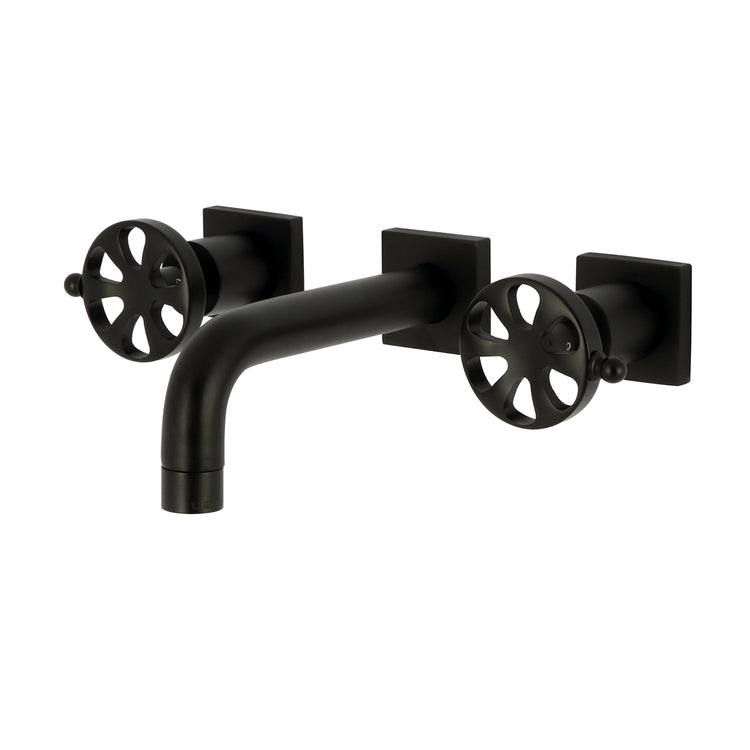 Kingston Sona KS6120RX - Belknap Double-Handle 3-Hole Wall Mount Bathroom Faucet, Matte Black