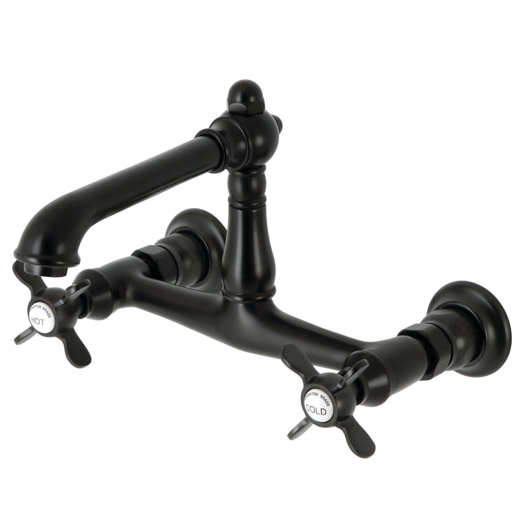Kingston Heirloom KS7240BEX - Essex Double-Handle 2-Hole Wall Mount Bathroom Faucet, Matte Black