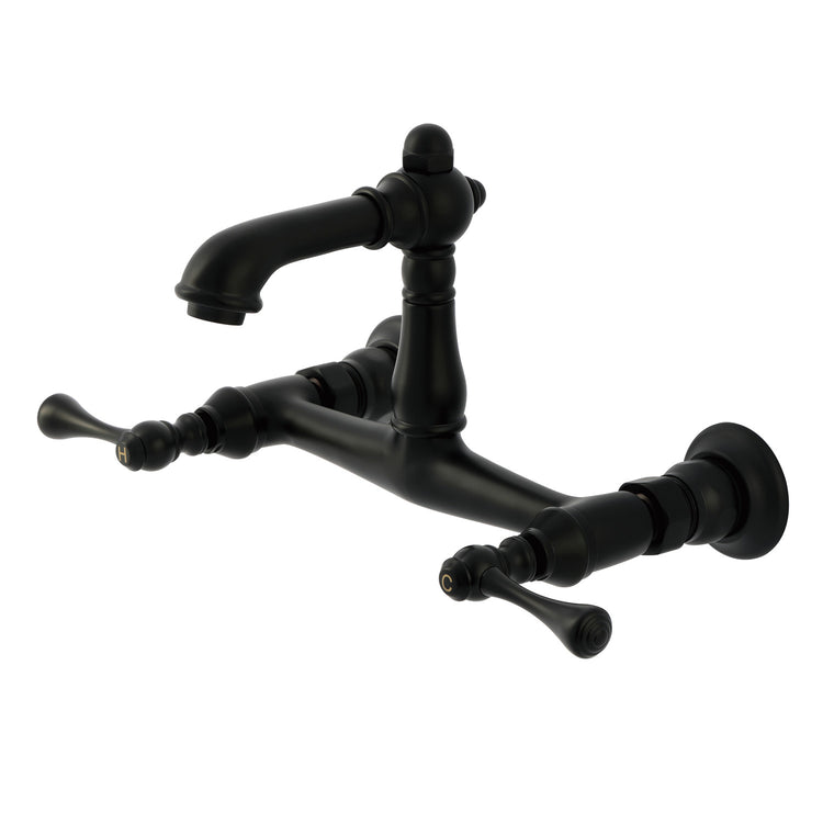 Kingston Heirloom KS7250BL - English Country Double-Handle 2-Hole Wall Mount Bathroom Faucet, Matte Black