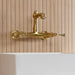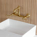 Embody the extravagance of 18th century Europe by adorning your house with the traditional elegance offered by this faucet. The English Country two-handle wall mount bathroom faucet and its featured sturdy brass construction and premium brushed brass finish are guaranteed to glamorize your home's traditional ensemble for years to come. Attached to the wall behind your sink, the horizontal pop adds a stunning element to your bathroom design. Clean-up is also made a breeze as counter space is cleared up.