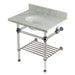 Kingston Tulare KVPB3030MAB6 - Templeton 30-Inch Carrara Marble Console Sink with Acrylic Legs and Shelf (8-Inch, 3-Hole), Carrara Marble White/Polished Nickel