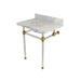 Kingston Tulare KVPB30MA7 - Templeton 30-Inch Carrara Marble Vanity Top with Acrylic Legs (8-Inch, 3-Hole), Carrara Marble White/Brushed Brass