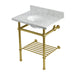 Kingston Heirloom KVPB30MBB7 - Templeton 30-Inch Carrara Marble Console Sink with Brass Legs and Shelf (8-Inch, 3-Hole), Carrara Marble White/Brushed Brass