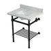 Kingston Heirloom KVPB30MBSQB0 - Templeton 30-Inch Carrara Marble Console Sink with Brass Legs and Shelf (8-Inch, 3-Hole), Carrara Marble White/Matte Black