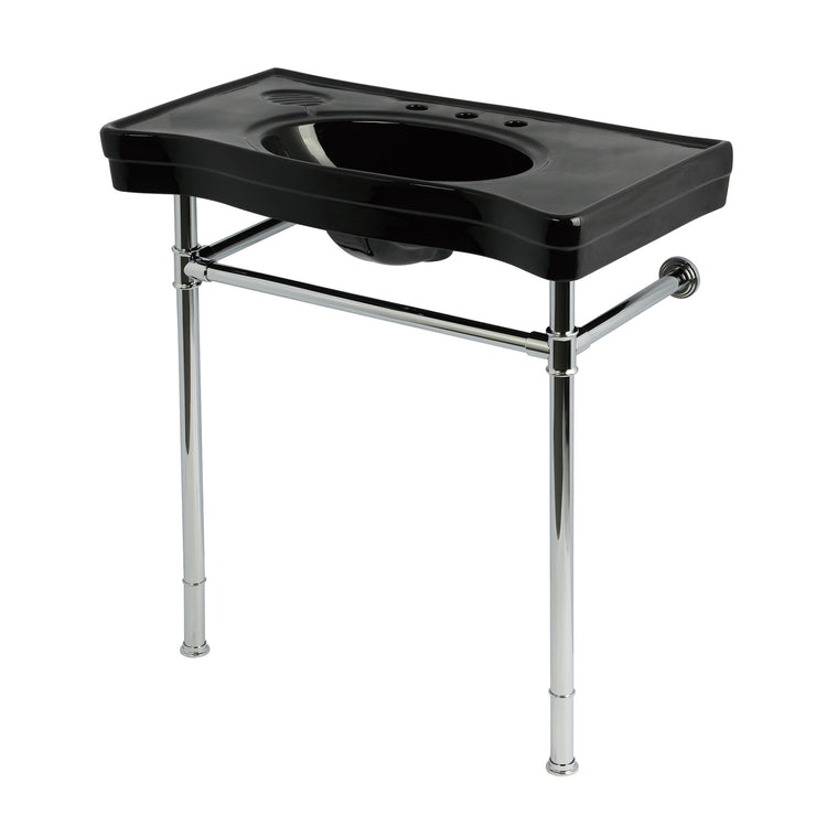 Kingston Tulare KVPB36198K81 - Imperial 36-Inch Ceramic Console Sink with Stainless Steel Legs (8-Inch, 3-Hole), Black/Polished Chrome