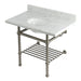 Kingston Heirloom KVPB3630MBB8 - Templeton 36-Inch Carrara Marble Console Sink with Brass Legs and Shelf (8-Inch, 3-Hole), Carrara Marble White/Brushed Nickel