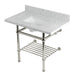 Kingston Heirloom KVPB3630MBSQB6 - Templeton 36-Inch Carrara Marble Console Sink with Brass Legs and Shelf (8-Inch, 3-Hole), Carrara Marble White/Polished Nickel