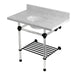 Kingston Tulare KVPB36MAB0 - Templeton 36-Inch Carrara Marble Console Sink with Acrylic Legs and Shelf (8-Inch, 3-Hole), Carrara Marble White/Matte Black