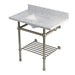Kingston Heirloom KVPB36MBSQB8 - Templeton 36-Inch Carrara Marble Console Sink with Brass Legs and Shelf (8-Inch, 3-Hole), Carrara Marble White/Brushed Nickel