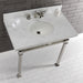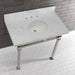 Kingston Sona KVPB36MOQ6 - Monarch 36-Inch Carrara Marble Console Sink with Stainless Steel Legs (8-Inch, 3-Hole), Carrara Marble White/Polished Nickel