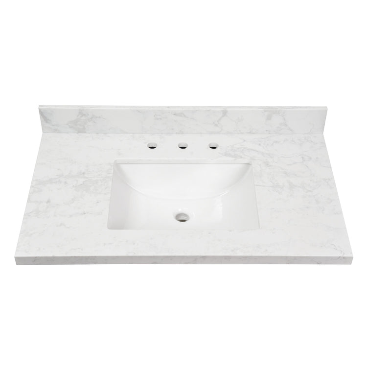 Kingston Ferrara KVPB3722W38CR 37-Inch Quartz Vanity Top (8" Faucet Drillings), Quartz White
