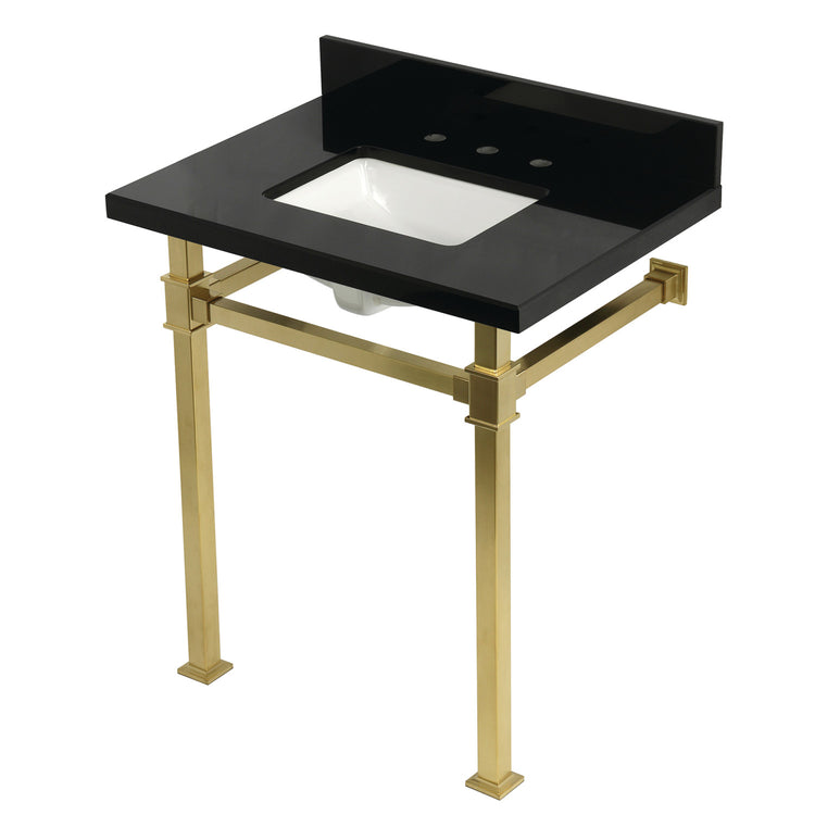 Kingston Sona KVPK30KSQ7 - Monarch 30-Inch Black Granite Console Sink with Stainless Steel Legs (8-Inch, 3-Hole), Black Granite/Brushed Brass