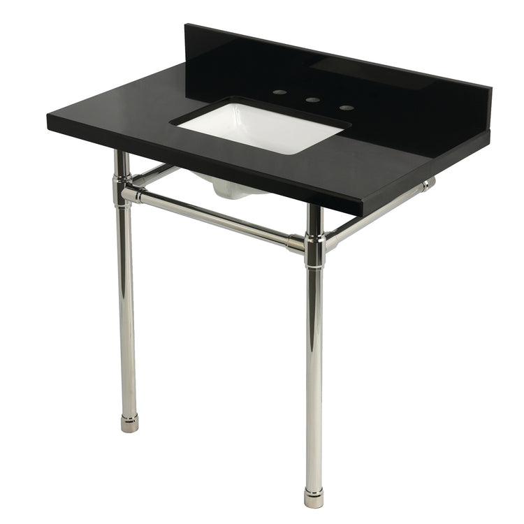 Kingston Tulare KVPK36K8SQ6ST - Dreyfuss 36-Inch Black Granite Console Sink with Stainless Steel Legs (8-Inch, 3-Hole), Black Granite/Polished Nickel