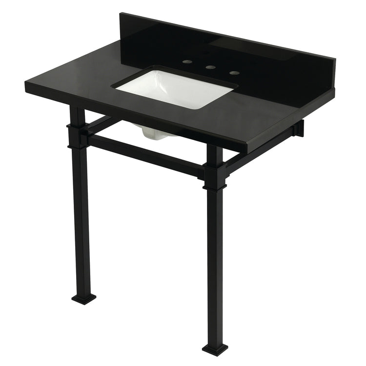 Kingston Sona KVPK36KSQ0 - Monarch 36-Inch Black Granite Console Sink with Stainless Steel Legs (8-Inch, 3-Hole), Black Granite/Matte Black