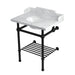 Kingston Heirloom LMS30MBB0 - Pemberton 30-Inch Carrara Marble Console Sink with Brass Legs and Shelf (8-Inch, 3-Hole), Carrara Marble White/Matte Black