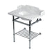 Kingston Heirloom LMS30MBB1 - Pemberton 30-Inch Carrara Marble Console Sink with Brass Legs and Shelf (8-Inch, 3-Hole), Carrara Marble White/Polished Chrome