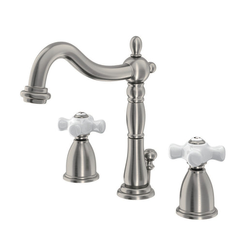 Kingston BrassKingston Heirloom KB1978PX - Heritage Two-Handle 3-Hole Deck Mount Widespread Bathroom Faucet with Pop-Up Drain, Brushed Nickel A lavish spark o...