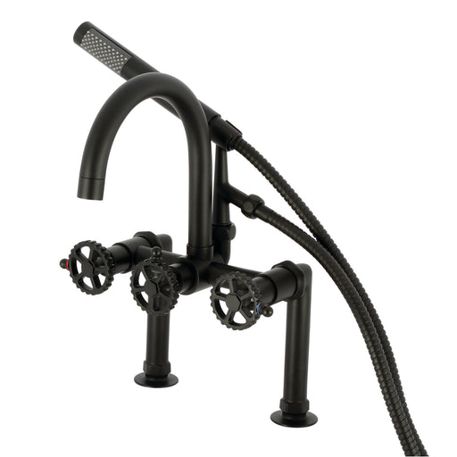 Kingston BrassKingston Sona AE8400RKX - Webb Three-Handle 2-Hole Deck-Mount Clawfoot Tub Faucet with Knurled Handle and Hand Shower, Matte Black A touch of vi...