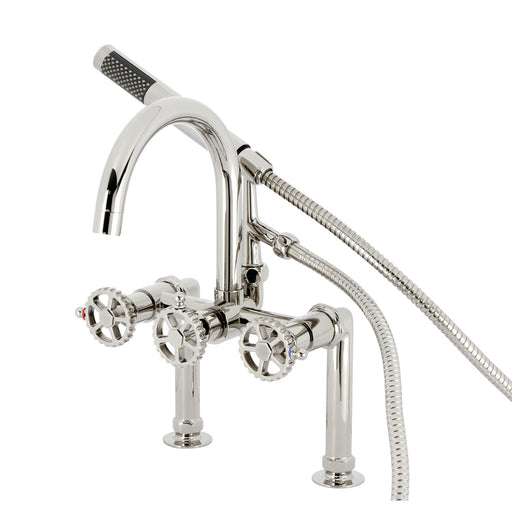 Kingston BrassKingston Sona AE8156RKX - Webb Three-Handle 2-Hole Adjustable Wall Mount Clawfoot Tub Faucet with Knurled Handle and Hand Shower, Polished Nickel ...