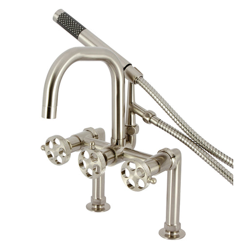 Kingston BrassKingston Sona AE8158RKX - Webb Three-Handle 2-Hole Adjustable Wall Mount Clawfoot Tub Faucet with Knurled Handle and Hand Shower, Brushed Nickel ...